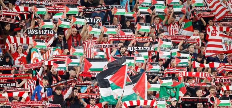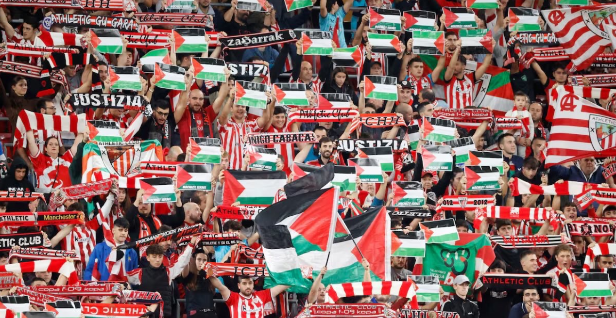 وأعلام فلسطين تُزين مُدرجات جماهير أتلتيك بلباو خلال مواجهة ريال مايوركا بالدوري الإسباني