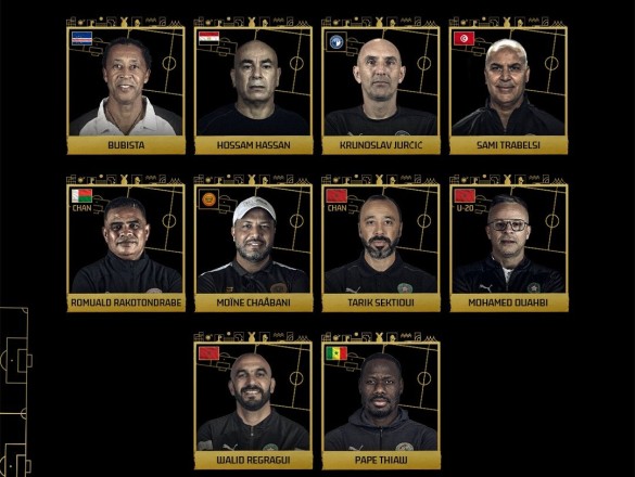 كما تواجد في القائمة طارق السكويتي مدرب منتخب المغرب للمحليين، ومحمد وهبي مدرب منتخب المغرب للشباب تحت 20 عامًا، وبابي ثياو مدرب منتخب السنغال، وأخيرًا رومولو راكوتوندرابي مدرب منتخب مدغشقر.