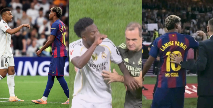 وأظهرت لقطات بثتها “موفيستار” أن بيلينجهام قال عبارته الشهيرة للحكم، بينما دخل فينيسيوس أيضا في تحدٍ مع لامين يامال، ووصف بيدري بـ”الطفل الباكي”.