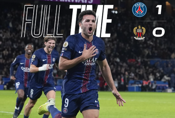 حقق باريس سان جيرمان فوزا قاتلا على حساب نيس بنتيجة 1-0، في اللقاء الذي جمع بينهما مساء السبت على ملعب حديقة الأمراء من منافسات الجولة الـ 11 في الدوري الفرنسي.