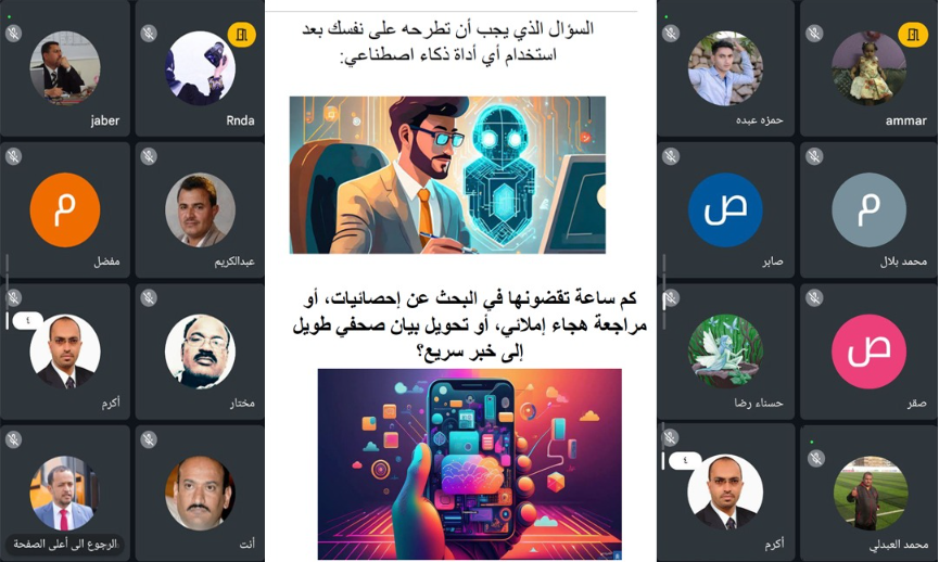 نظمت الجمعية اليمنية للإعلام الرياضي ورشة تدريبية عبر الزوم بعنوان الذكاء الاصطناعي وثورة غرف التحرير حاضرت فيها الدكتورة خلود محمد مدرس الإعلام الرقمي المحاضر الزائر في اليونسكو ، والذي أصبح ضرورة ملحة لمواكبة التطورات المتسارعة في مجال الإعلام الرياضي الحديث بعيدا عن الروتين السابق ، وسط مشاركة واسعة من أعضاء الجمعية اليمنية للإعلام الرياضي ومجلس إدارتها..
