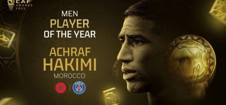 أعلن الاتحاد الافريقي لكرة القدم ، رسميا, عن تتويج المغربي اشرف حكيمي نجم فريق باريس سان جيرمان الفرنسي بجائزة افضل لاعب افريقي لعام 2025 ، متفوقا على محمد صلاح و فيكتور اوسيمين، في الحفل الذي تستضيفه الآن المغرب وتحديداً مدينة الرباط.