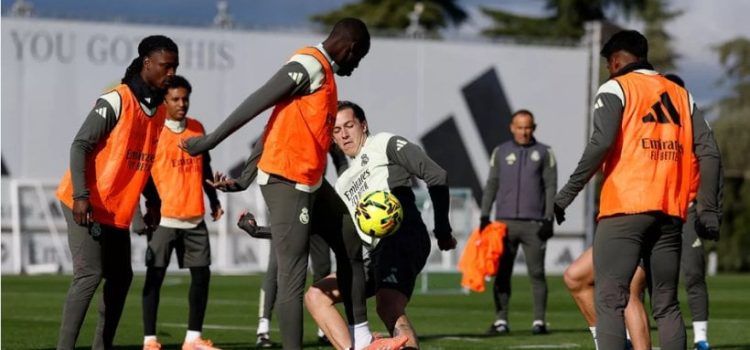 وبحسب ما أورده النادي الملكي عبر موقعه الإلكتروني على الإنترنت، فإن أوريلين تشواميني تدرب بشكل طبيعي مع المجموعة إلى جانب دين هاوسن، وكيليان مبابي، وإدواردو كامافينجا.