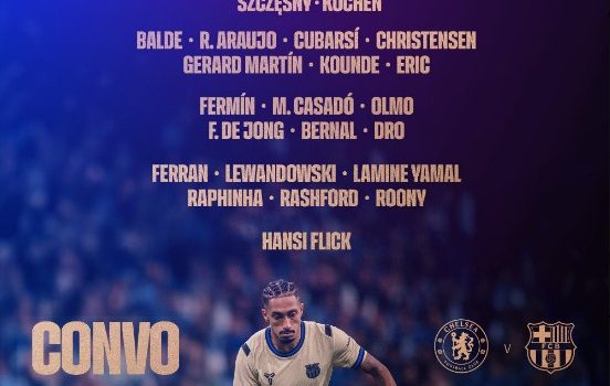 وتغادر بعثة برشلونة إلى لندن اليوم، على أن يعقد هانز فليك ورافينيا المؤتمر الصحفي الرسمي قبل اللقاء، حيث من المتوقع أن يسلط المدرب الضوء على عودة دي يونج وراشفورد.