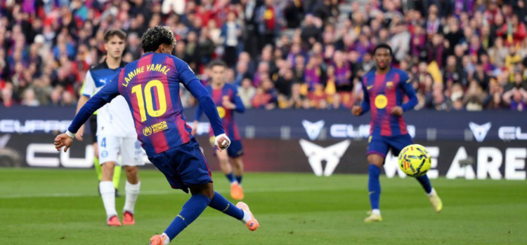 وكان الضيوف باغتوا الفريق الكتالوني وهزوا الشباك عند الدقيقة الاولى بعد خطأ دفاعي عن طريق بابلو ايبانيز، وكاد الضيوف ان يضيفوا الهدف الثاني بعد خطأ دفاعي جديد عند الدقيقة 3 الا ان الحارس انقذ الموقفن وعند الدقيقة 8 تمكن لامين يامال من هز الشباك بعد ان وصلت كرة مرتدة له، وعند الدقيقة 26 تمكن رافينيا من ايصال الكرة الى داني اولمو الذي تمكن تسجيل هدف التقدم.