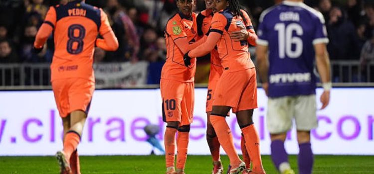 ضمن فعاليات الدور الـ32من منافسات كأس ملك اسبانيا ” كوبا ديل راي “، حسم نادي برشلونة تأهله الى الدور المقبل بعد ان حقق فوزاً صعباً بمواجهة غوادالاخارا وبواقع 2-0 وعانى ابناء المدرب فليك من فرض ايقاعهم الهجومي في ظل تكتل دفاعي كبير من جانب لاعبي الخصم ولكن في الاخير نجحوا في خطف بطاقة التأهل للدور المقبل.