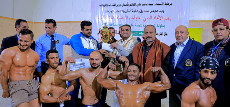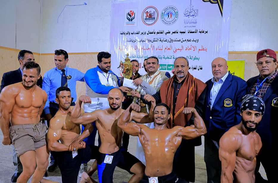 كرّم وكيل قطاع الرياضة بوزارة الشباب والرياضة الأستاذ علي هضبان أبطال بطولة الجمهورية لنخبة بناء الأجسام، التي نظمها الاتحاد العام للعبة برعاية وزارة الشباب والرياضة، وتمويل صندوق رعاية النشء والشباب، خلال الفترة من 6 إلى 8 يناير الجاري، بمشاركة سبع محافظات هي: (أمانة العاصمة، عدن، ذمار، إب، البيضاء، عمران، الحديدة).