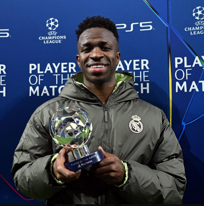 توج نجم ريال مدريد، فينيسيوس جونيور، بجائزة لاعب الأسبوع في دوري أبطال أوروبا، اليوم الخميس.