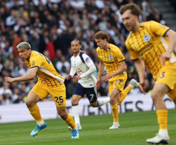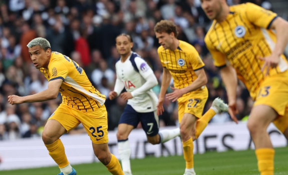 فشل نادي توتنهام هوتسبير في الخروج من المنطقة الحمراء في ترتيب الدوري الانجليزي الممتاز بعد ان تلقى هدف في الوقت البدل عن ضائع من مباراة برايتون البيون على ارض ملعب توتنهام ارينا في شمال لندن بعد تعادل الفريقان بهدفين لكل منهما.