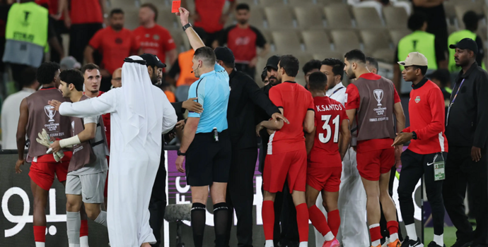 وشهدت نهاية اللقاء احتجاجات قوية من لاعبي الفريق الإماراتي، حيث انتقدوا قرارات الحكم الأسترالي شون إيفانز، وسط توتر كبير عقب صافرة النهاية.