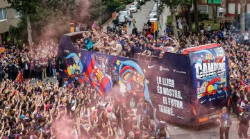 الدوري الاسباني بالصور.. برشلونة يحتفل بالليجا أمام جماهيره مايو 15, 2023 احتفل فريق برشلونة، مساء اليوم الإثنين، بلقب الدوري الإسباني " الليجا "، من خلال التجول بالحافلة في شوارع المدينة. وكان برشلونة قد… اقراء المزيد